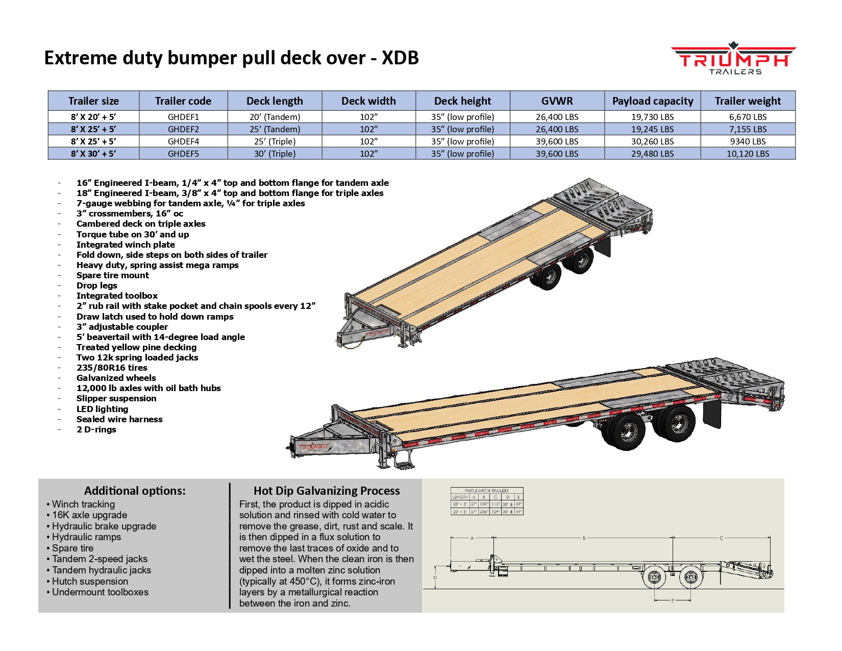 20+5 FT Pintle Tag-Along Deckover Trailer 24K, Galvanized 12 Ton