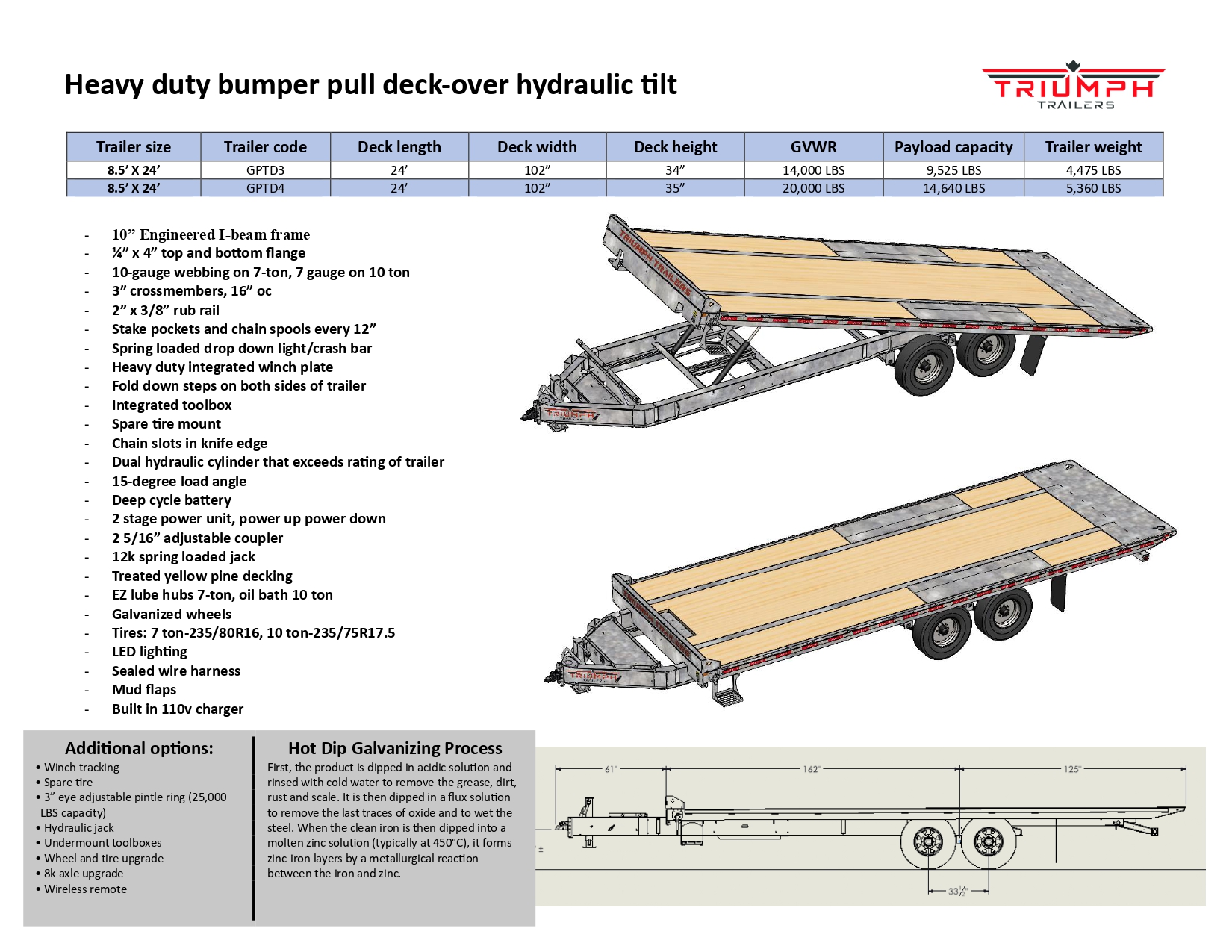 Our heavy-duty tilt deckover trailer is built for contractors, landscapers, and equipment haulers who demand strength, durability, and ease of use. Featuring a 10″ I-beam frame, dual cylinder tilt design, and treated decking, it provides stable tilting and long-lasting performance.